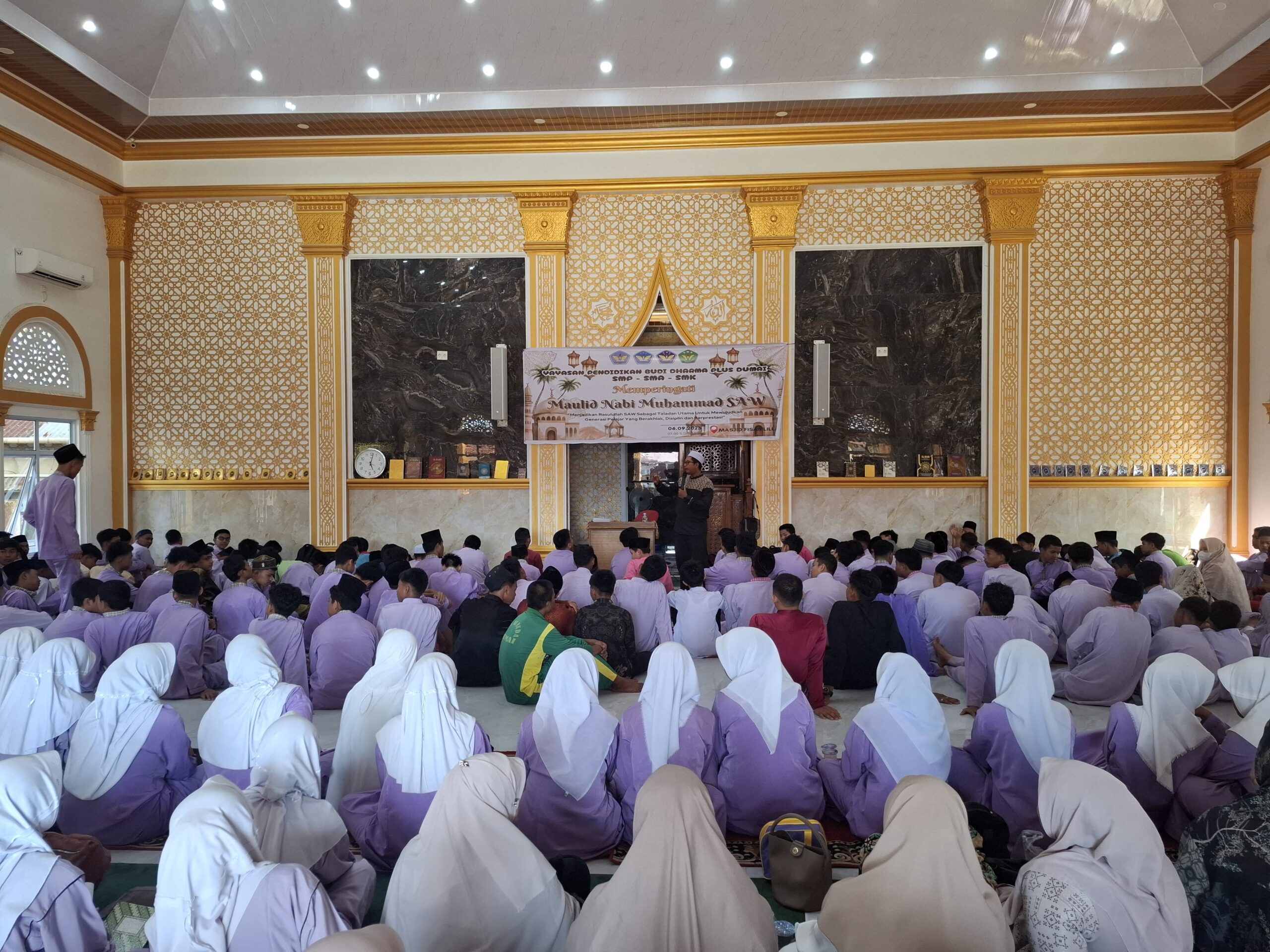 DUMAI – Yayasan Pendidikan Budi Dharma Plus Kota Dumai menggelar peringatan Maulid Nabi Muhammad SAW 1447 Hijriyah atau bertepatan dengan tahun 2025 Masehi di Masjid Fiisabilillah, Jalan Dr. Wahidin, Kota Dumai.