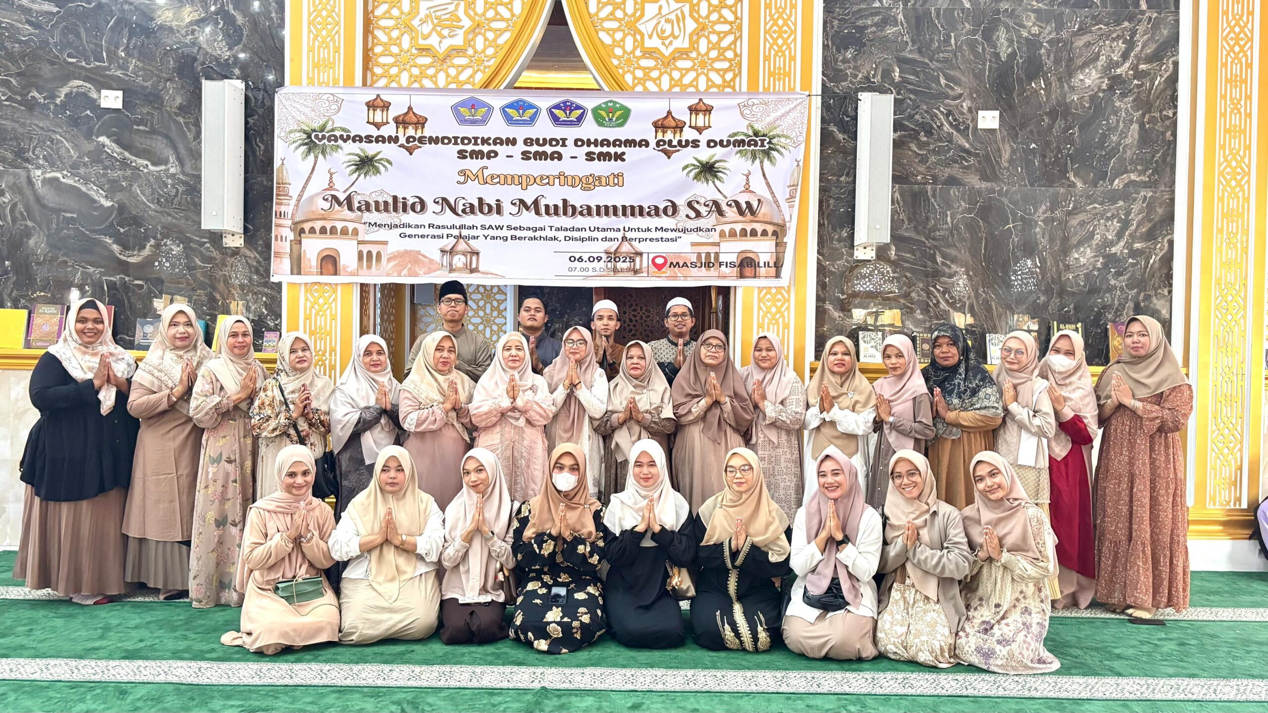 DUMAI – Yayasan Pendidikan Budi Dharma Plus Kota Dumai menggelar peringatan Maulid Nabi Muhammad SAW 1447 Hijriyah atau bertepatan dengan tahun 2025 Masehi di Masjid Fiisabilillah, Jalan Dr. Wahidin, Kota Dumai.